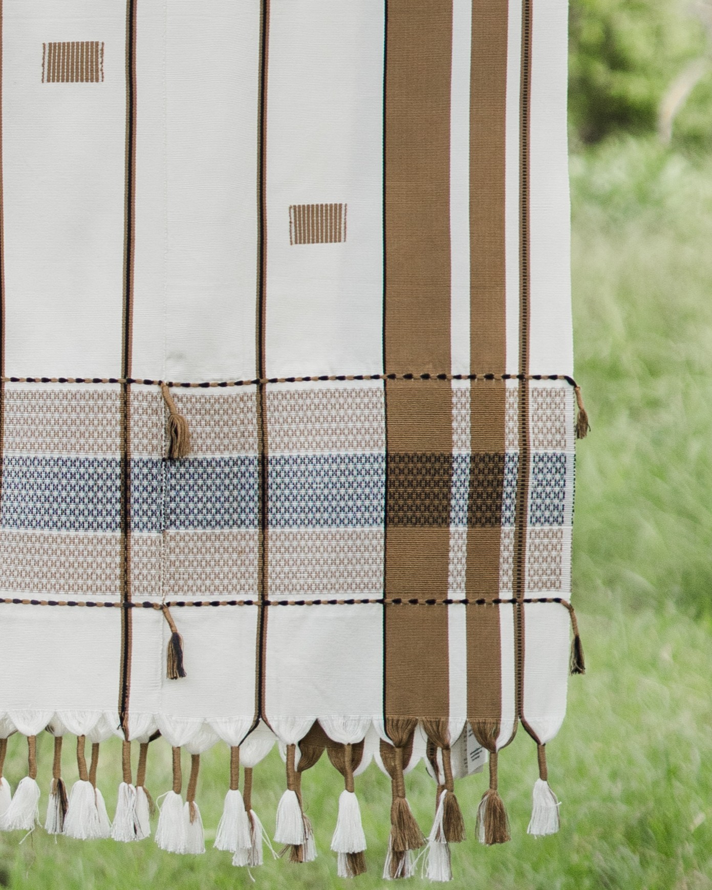 Using the traditional loin loom, this piece has been specially woven in bamboo yarn by our home based women weavers.