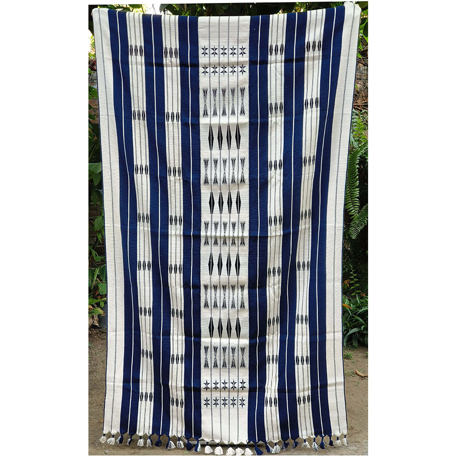 This throw is carefully crafted on a traditional loin loom, showcasing the beauty of handmade textile art.