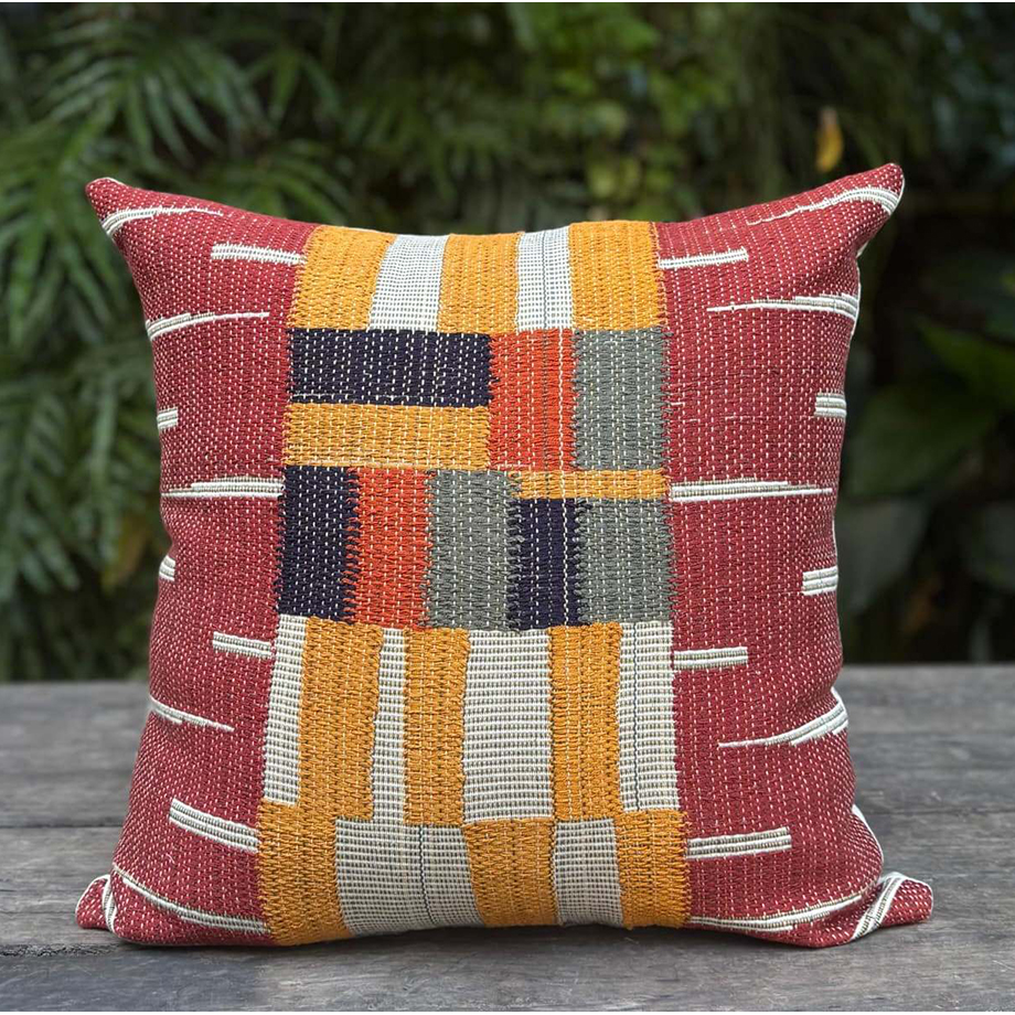 This intricate cushion is handwoven on a traditional back-strap loin loom, using time-honoured techniques passed down through generations.