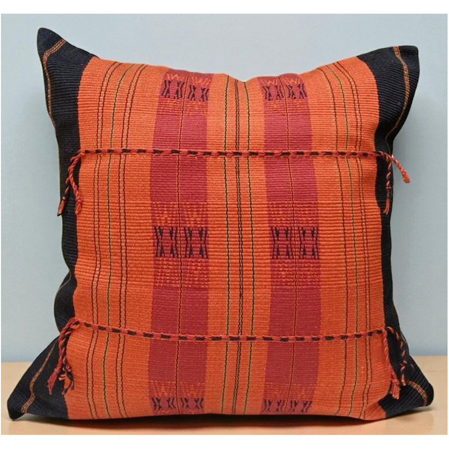 This cushion cover is carefully crafted on the traditional loin loom, showcasing the beauty of handmade textile art.